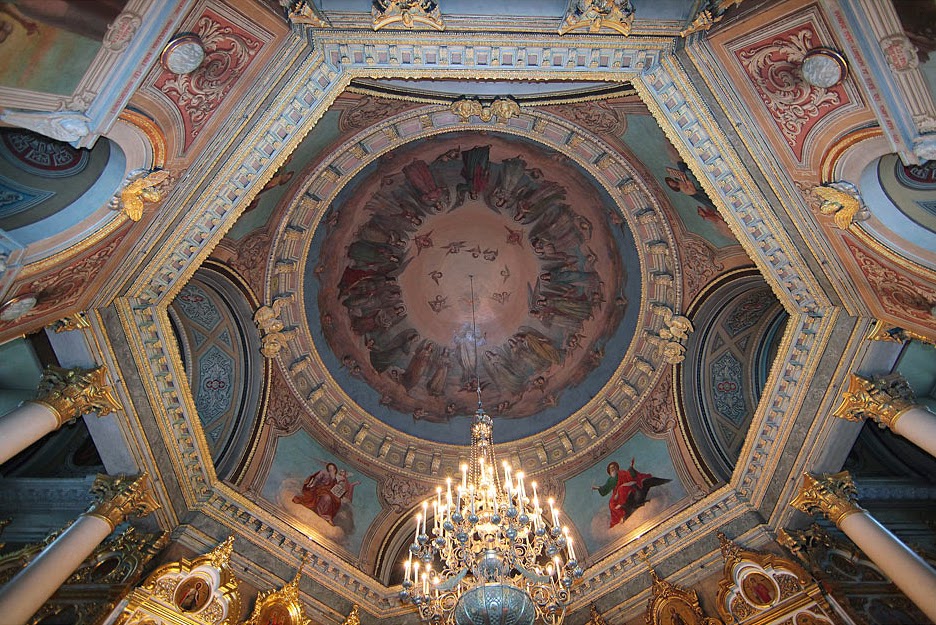 Центральное пространство храма перекрыто купольным сводом, большие отсеки – цилиндрическими, а малые – плоскими потолками.
